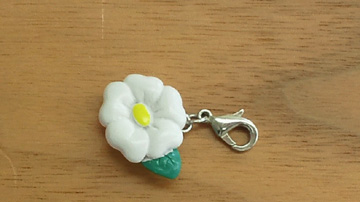 こちらは恋みくじをひくと中に入っている椿のチャーム![]()