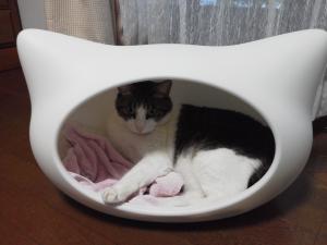 一番乗りで、我が家のお漏らし君が入ってしまいました・・・? 汚しても洗える事が利点なので、まーいいでしょう! 一匹も気に入らなかったら、邪魔な置物になる所だったので、一応は満足です[emoji:e-319]
