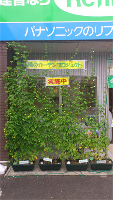 『緑のカーテンプロジェクト』 こ~んなに大きな実がなってま~す 順調にいけば、ゴーヤちゃんぷるも夢じゃないかな 緑のカーテン。。。。。。出来てますよね 室内から、ガラス越しに差し込む日差しは、緑の葉で遮られ、ちょっぴり涼を感じます。 追肥と水やり頑張るぞ