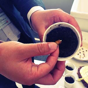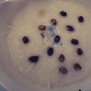 順調に発芽を楽しみに待っていた四日市店ですが なかなかそう簡単にことは進みません 大切なタネにカビが生えてしまいました 14粒のうち11粒も腐ってしまったのです。。。 なかなか上手くはいかないものですね 残った3つは、奇跡的にも発芽していたので 自家製のポットに移して根が生えるのをまちます