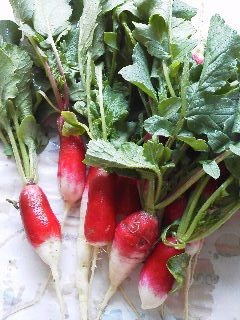 休日、庭の手入れをしていたら、『これ、今畑で採った所だから食べて・・・』 と、ご近所で家庭菜園をしている方からラディッシュ(長さ8㎝位)を頂きました。 上部が見事な赤で、勿論採りたて、無農薬、本当に嬉しくなりました[emoji:e-267] 甘酢漬けにしたら、白い所も真赤に染まり、とっても美味しくいただきました。