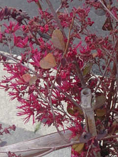 我が家の生け垣の木に花が咲きました 変わったカタチの花です 赤黒い色の葉っぱなのですが、花が咲くとシックな赤色の生け垣になって、なかなか素敵 今はデザイン性の優れたフェンスもたくさんあるので、フェンスのお家も多いかと思いますが 雰囲気は生け垣のがやっぱりイイですね この木は、それほど成長も早くないので剪定もあまり必要なく秋に葉っぱが落ちたりもしないので楽チン 手がかからない木を選べば生け垣もアリですよ~
