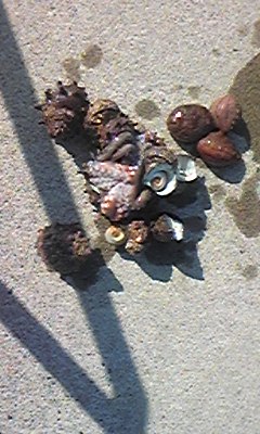 んでいるので,海岸付近まで行き荷上げし堤防の上まで持っていてあげたら、海女さんがお礼にとなまこ,サザエ