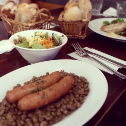 私が選んだのはレンズ豆とソーセージ&サラダ&籠いっぱいのパン![]()