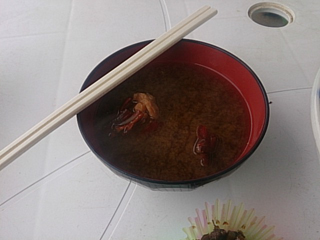 伊勢エビのあら汁と珍味がついてまーす![]()