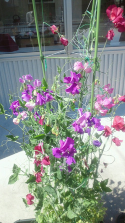スイートピーが咲き誇っております スイートピーの花言葉は「小さな喜び』「優しい思い出」「私を忘れないで」だそうです 花言葉にそったお花...