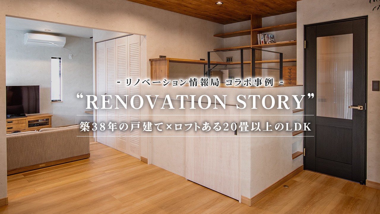 築38年の2×4住宅をリノベーション。 和室を取り込んだ20畳以上のLDK 大人もお子様もロフトで 楽しく収納できる家になりました。